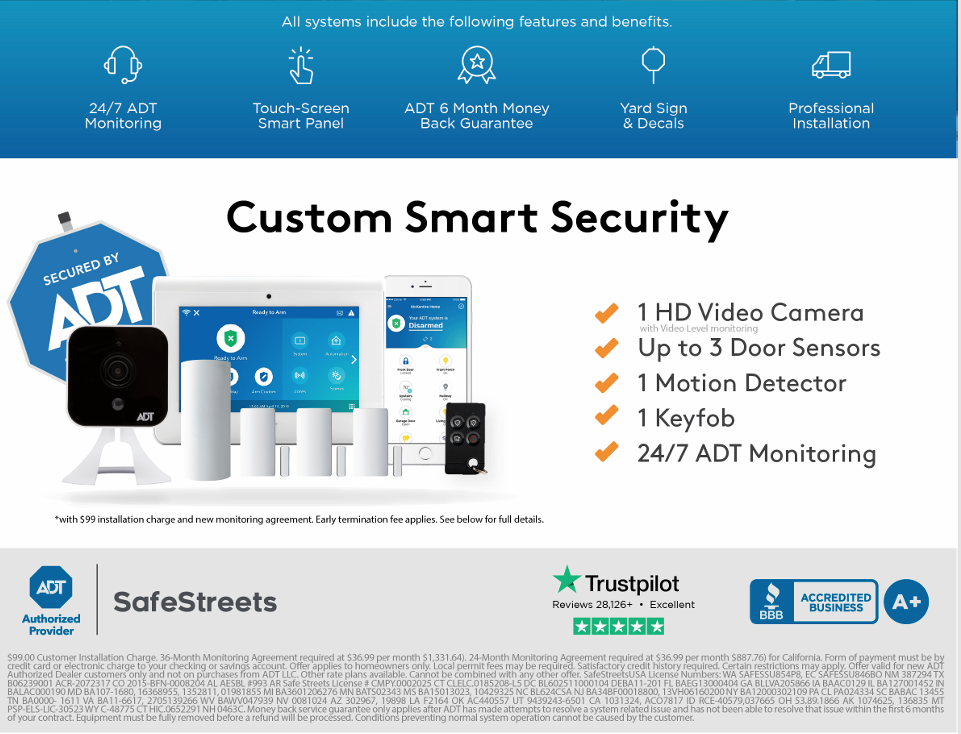 South Dakota Professional Services LLC, an authorized provider of ADT through Safe Streets, offers a variety of security monitoring solutions tailored to the needs of homeowners and small businesses. Many of our packages include complimentary equipment and professional installation and setup. We can customize a system to meet your specific requirements or provide a choice of pre-configured packages that incorporate security, fire, video, and home automation features. Please contact us today to schedule a complimentary, no-obligation consultation available in 44 states.
